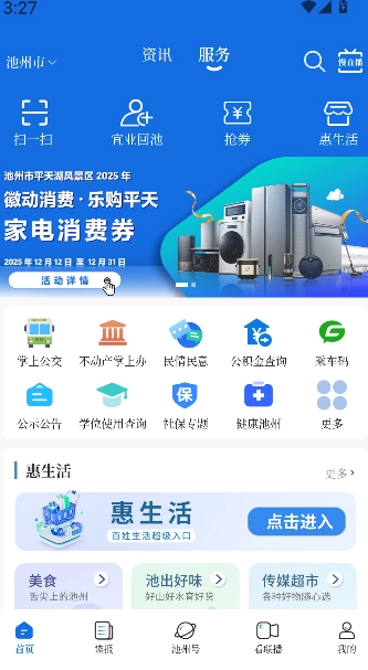 1、聚焦池州城市服务建设,内容涵盖政务与生活领域的各类场景。