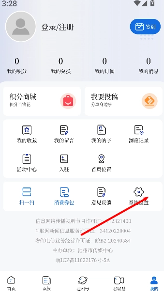 进入软件首页后,点击右下角的“我的”按钮,即可进入个人中心页面,在该页面可查看各类相关设置选项。