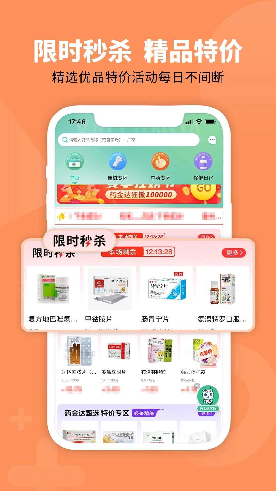 1、把药金达好,装上后用手机号注册,点几下就进首页了。