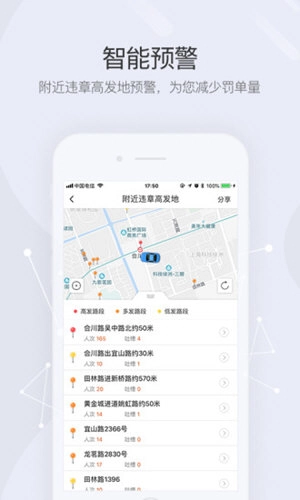 【实时提醒】新违章实时提醒,附近违章高发地提前预警。远离违章,争做平安好车主。