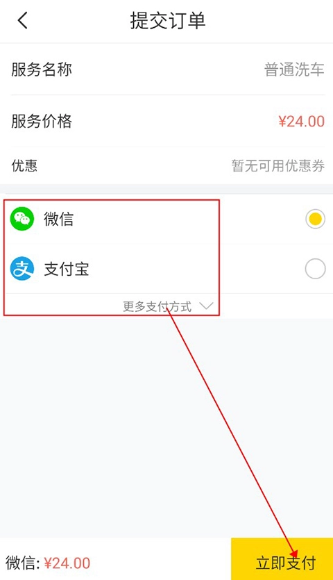 之后进入店铺页面,还可以选择自己要预约的洗车服务,选择好点击右下角“购买”即可。