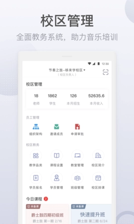 九拍教师具备校区员工管理功能,可帮助音乐教育机构负责人推进员工管理工作,涉及员工信息录入、考勤记录、工资管理等内容。通过这一功能,机构负责人能更方便地管理员工,提高工作效率。九拍教师还拥有备课与上课功能。备课对于教师来说是十分关键的环节,九拍教师可以辅助教师开展备课工作,具体有教案编写、教材整理和教学资源分享等方面。