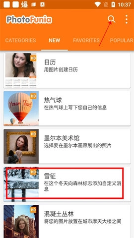 首先打开 Photofunia 雪地写字功能,在首页你可以选择点击“雪征”特效,或者通过搜索栏输入“雪地”进行查找。这两种方式虽然相似,但功能上存在一定区别。