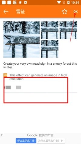 先来了解“雪征”模式,该模式仅支持生成一行文字,可输入中文、数字或英文。编辑完成后,点击右上角的“OK”按钮即可进入效果预览界面。