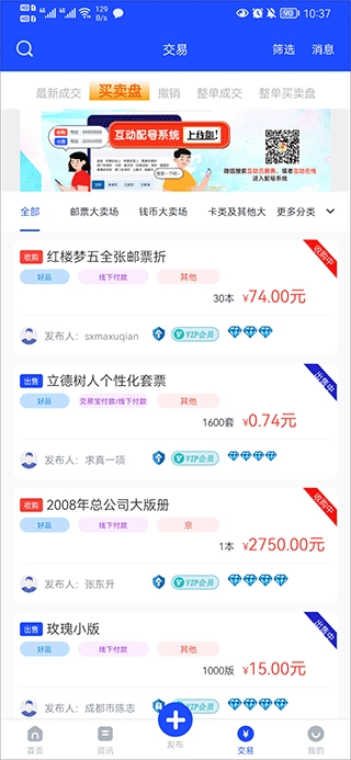 2.将交易流程精简,轻松发布藏品信息或浏览求购信息,省去了繁琐的操作步骤,让交易变得快速而直接。