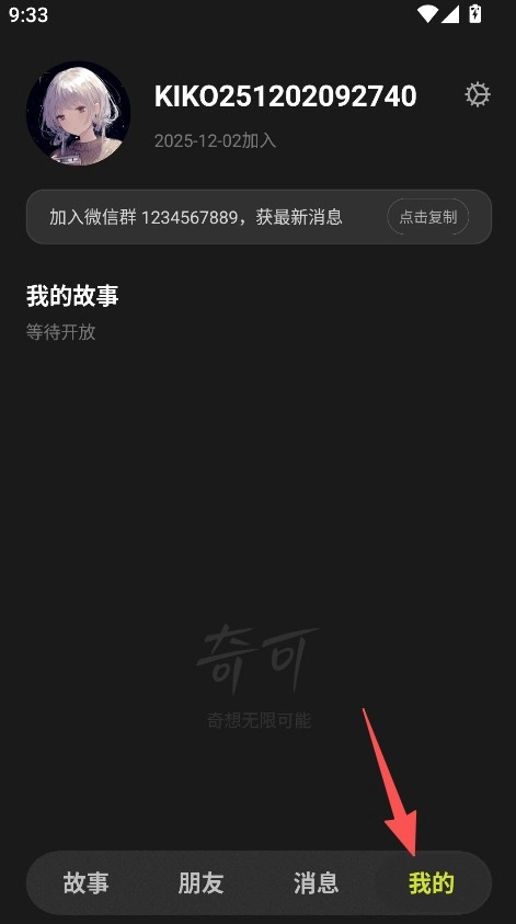 1、打开后点击“我的”,进入我的板块查看账号信息以及相关提示内容。