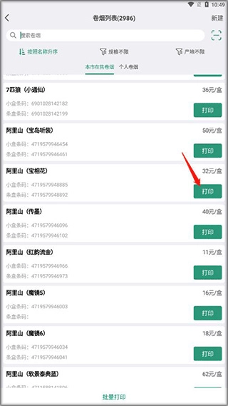 1、打印烟草价签的方法很简单,确定好价格后,点击打印的烟草;