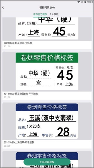 烟草价签管理是一款专注于商品管理与价签打印的专业软件。它具备丰富的多市卷烟数据以及标签模板,用户仅需挑选自己所在地区,选择完毕后就能查看本市正在售卖的卷烟数据模板,其中涵盖价格、条码、盒数、规格、产地、焦油量等信息。该软件还支持依据价格、地区进行筛选,要是没有找到所需的卷烟数据,可通过搜索栏搜索查看,或者扫码条码来查看。