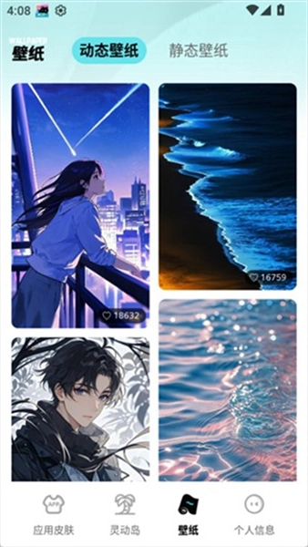 4、点击壁纸板块,这里有着各种各样的壁纸可以免费使用。