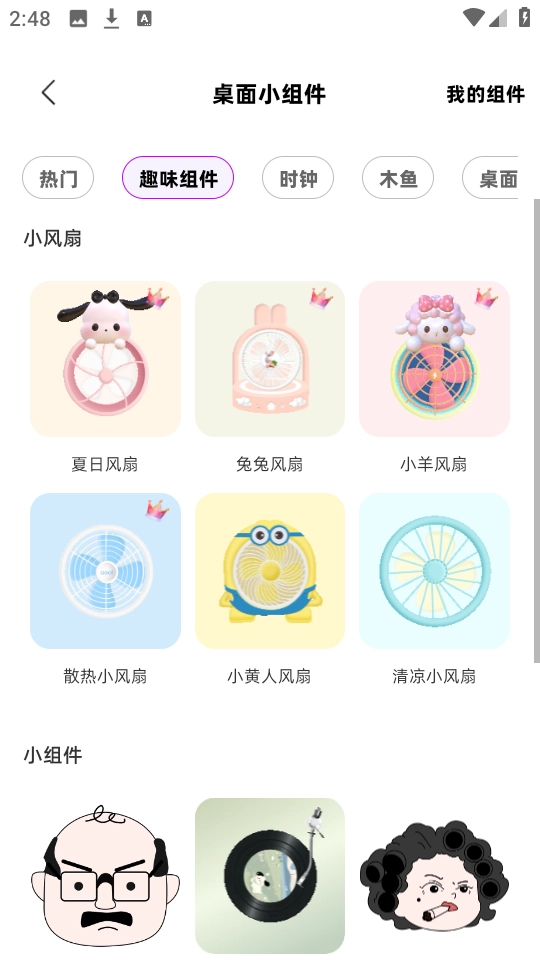 4、任意选择一个版块进入,这里以“趣味组件”为例,点击即可设置你喜欢的组件。