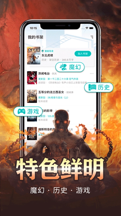 2、海量免费小说涵盖玄幻奇幻、武侠仙侠、都市言情、灵异科幻、青春校园、宫廷穿越、竞技游戏、历史军事等,一站式精彩呈现,免费小说尽在掌握