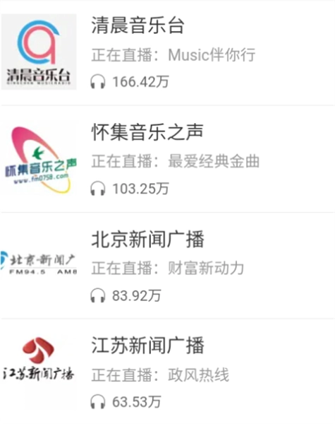 涵盖音乐、新闻、小说等不同类型电台,支持全国电台播放,满足多样化收听需求。