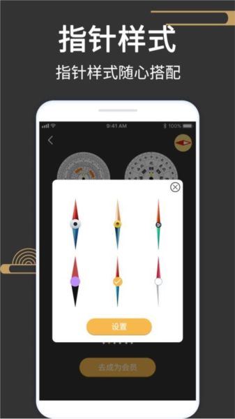 4、在所选罗盘样式详情页,点击【设置-按钮】,可对该罗盘样式进行相关设置。