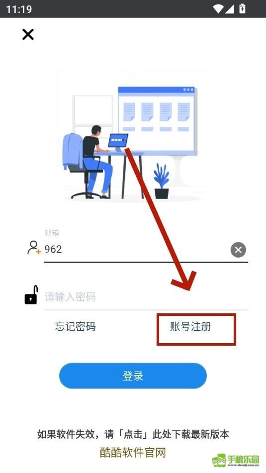 3、点击账号注册。