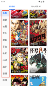 2.点击左侧可切换漫画类型,日漫、国漫、韩漫应有尽有。