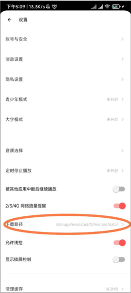 2、在设置界面我们可以看到路径,点击进去看详细的路径。