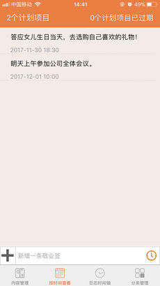 - 记录便签:主界面点击“+”按钮,输入文字并选择颜色分类,上传附件后保存。