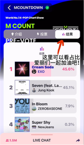 14、点击“结果”即可查看占比结果,快来为自己喜欢的idol投票吧!