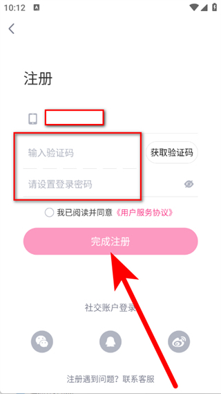 4、填写验证码,设置登录密码,勾选相关选项后,点击完成注册按钮。