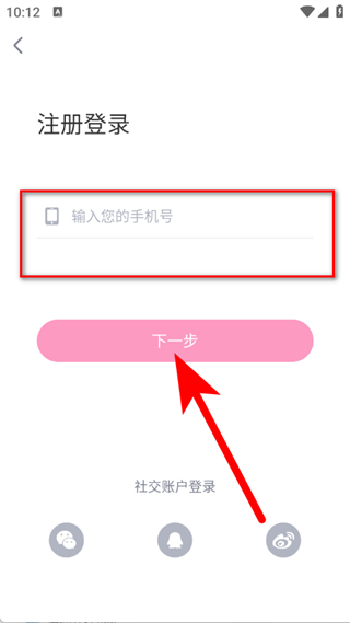 3、在注册页面,输入手机号码,点击下一步。