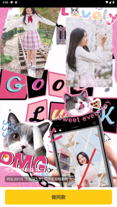 4、在权限获取通过后,你可以在模板页面找到并点击【做同款】按钮,这样就能导入对应的素材,然后参照模板的样式来制作专属于你的联通视频彩铃了。