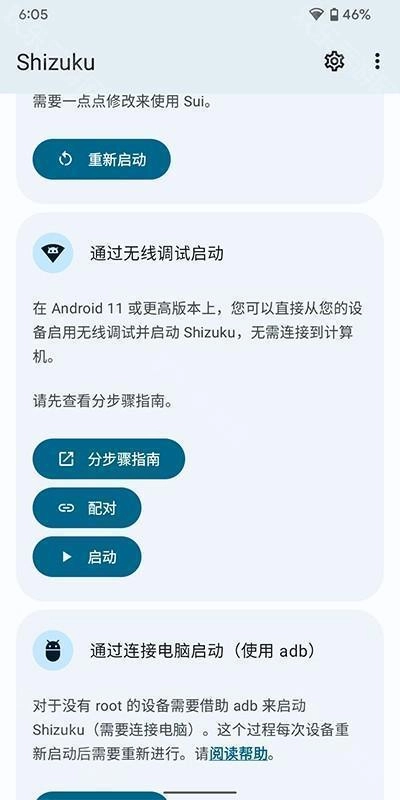 Shizuku支持通过以下三种方式启动。