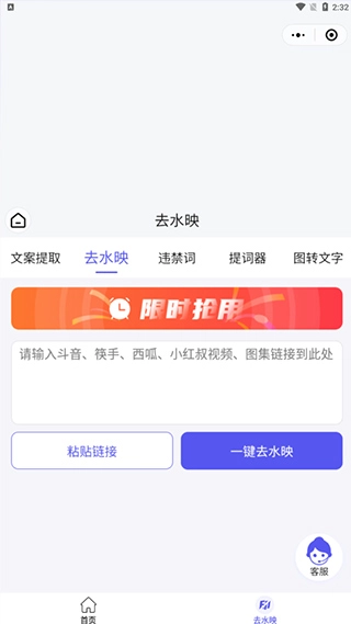 2、粘贴链接,点击一键去水印。