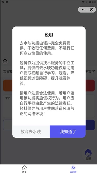 1、打开手机上的轻抖应用,找到并点击去水印功能。