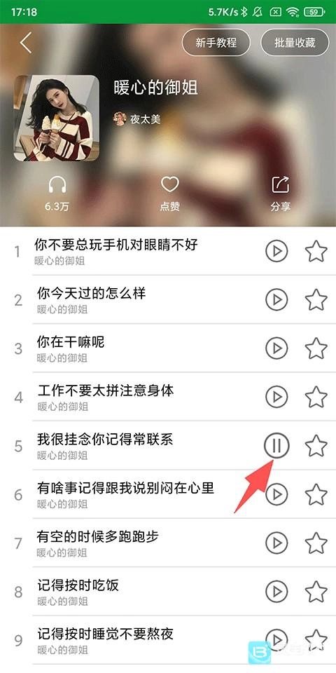 2、点击右侧的播放按钮播放语音,还可以进行收藏、分享、点赞;