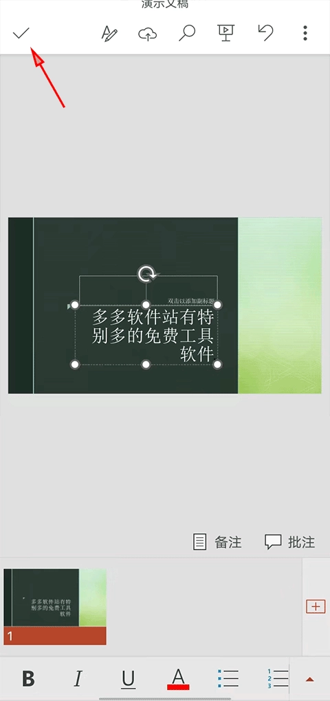 3、编辑好ppt之后点击左上角勾勾,表示保存当前内容。
