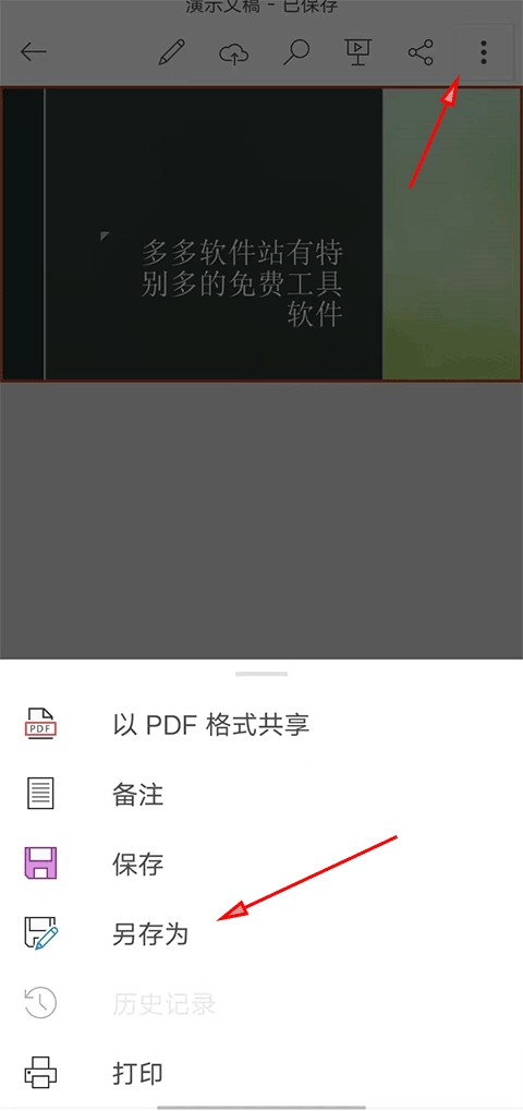 4、之后点击左上角的三个点,选择另存为。