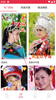 2、在创作页面的热门模板中,选择【民族风】模板。
