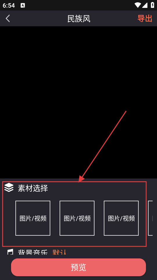 4、在制作页面的【素材选择】区域,可添加图片或视频素材来制作同款民族风作品。