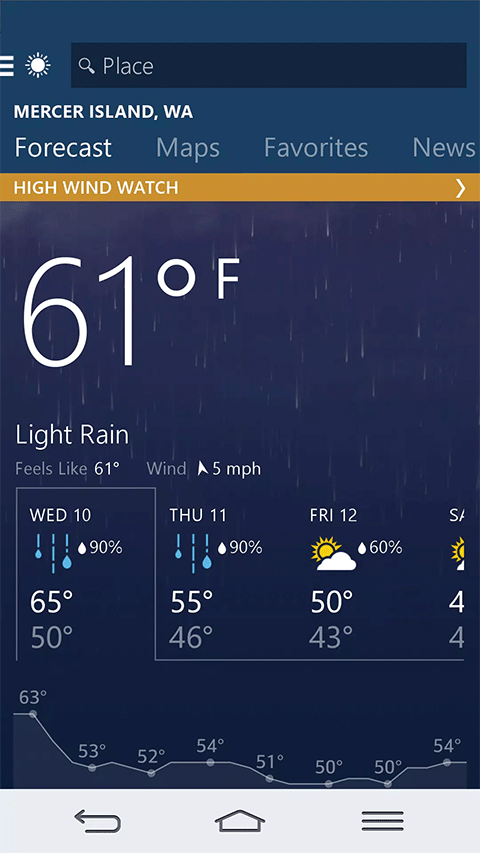 2、运用微软先进的天气预测技术,为用户提供精准且可靠的天气信息。