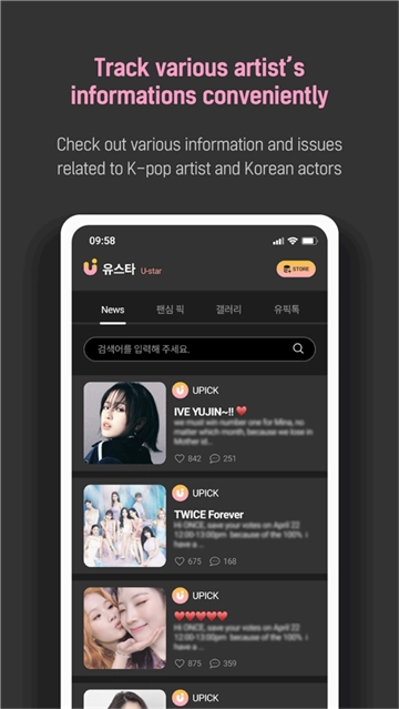 UPICK 是一个全球粉丝平台,面向热爱 K-pop 艺术家和韩国演员的全球粉丝。