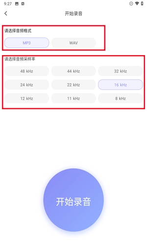 -可以选择音频格式,支持“MP3”,“WAV”;还可以选择音频采样率。