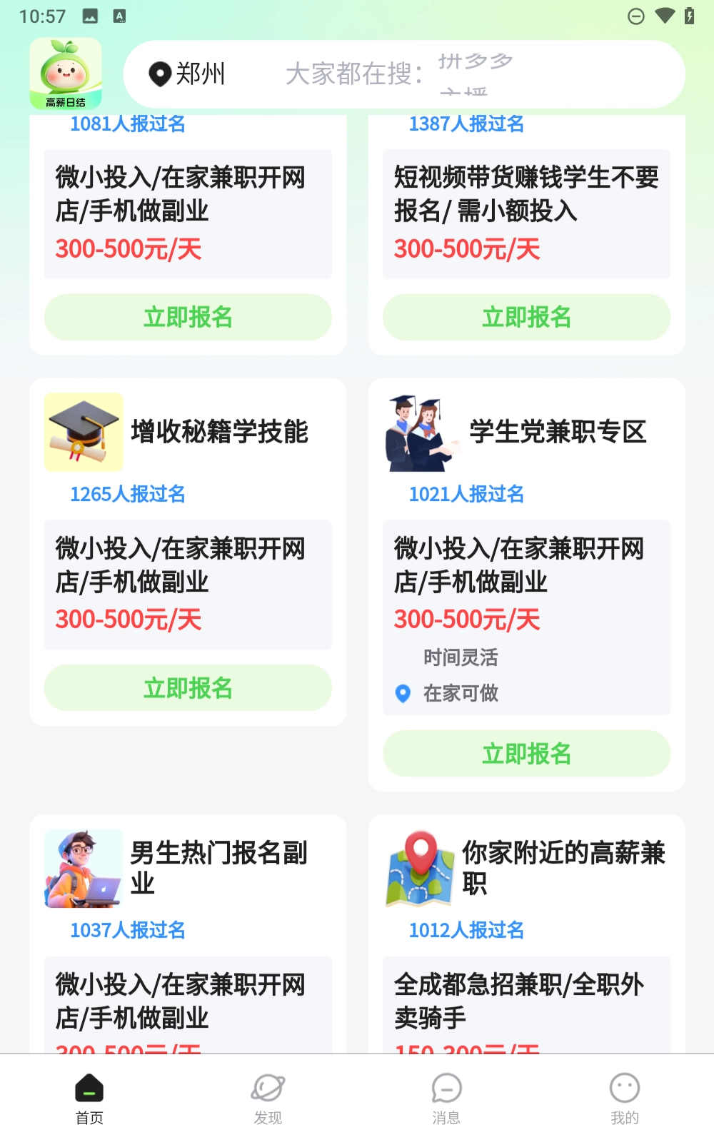 4.这里就可以开始浏览兼职工作啦,首页上就有很多了,你可以慢慢查看,找你感兴趣的工作。
