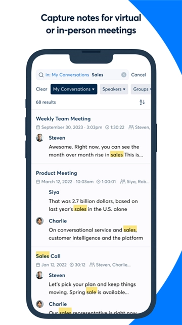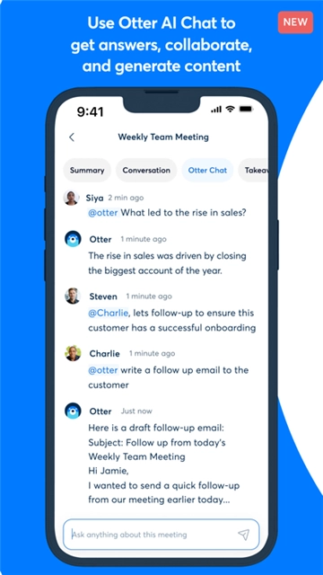OTTER可以帮助用户轻松记录会议中的内容,软件还将会识别出不同人讲解的内容。