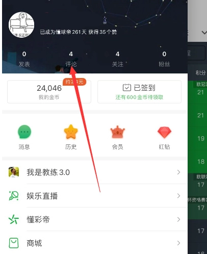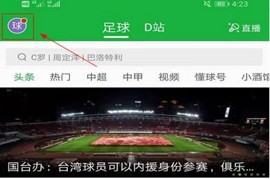 在懂球帝首页点击左上角的头像。