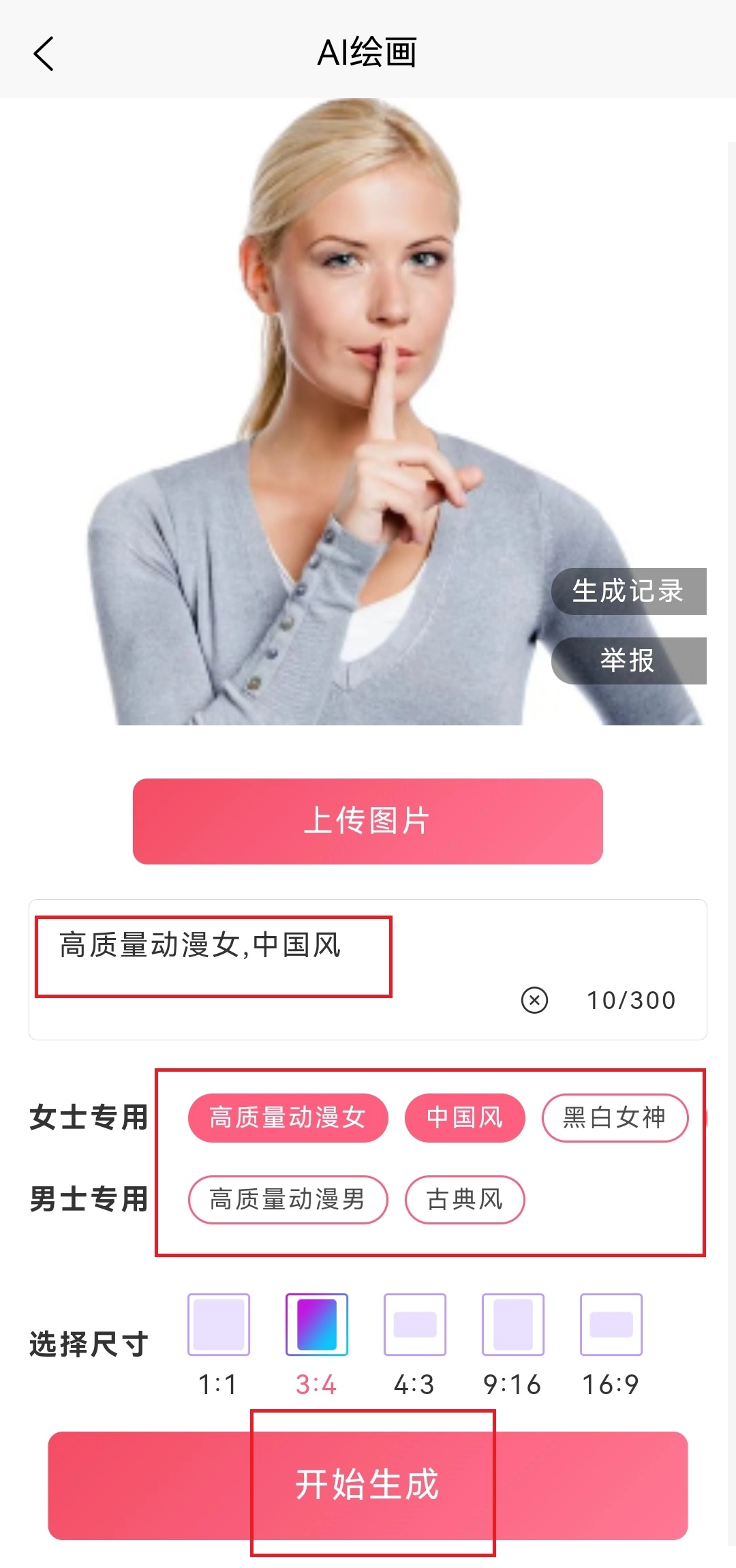 2.然后你就可以选择要上传的图片,接着再选择你喜欢的风格标签,以及图片尺寸。