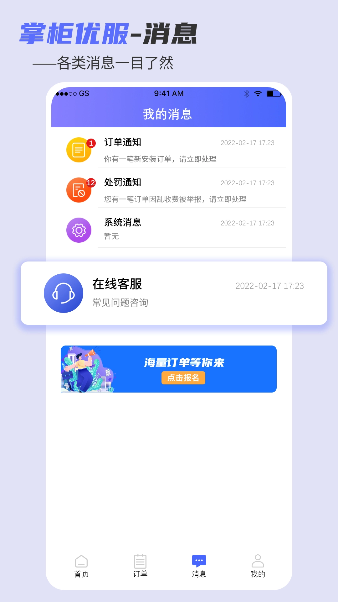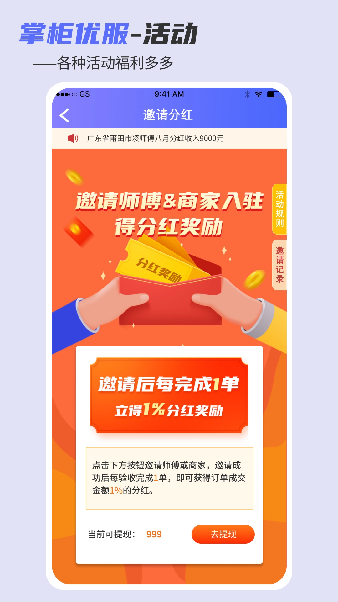 移动端随时随地管理:掌柜优服拥有移动客户端,店主可以随时随地查看店铺情况,远程掌控经营状况。