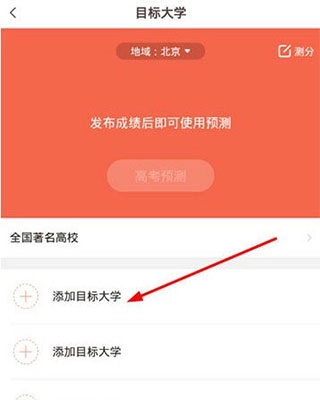 2、进入到目标大学界面,通过点击箭头所指的位置添加或修改目标大学。