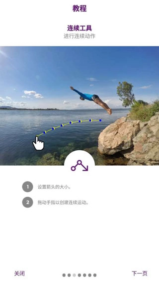 2、设置连续动作,拖动手指以创建连续运动;