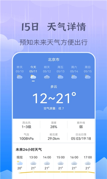 24小时天气预报:当日天气趋势随心查阅。