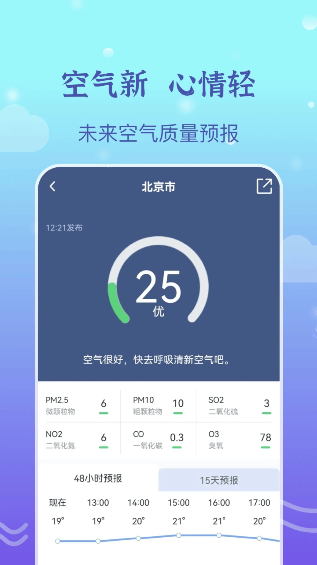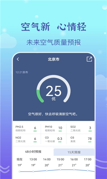 空气质量指数:空气指数界面升级,五天之内逐小时准确预报。