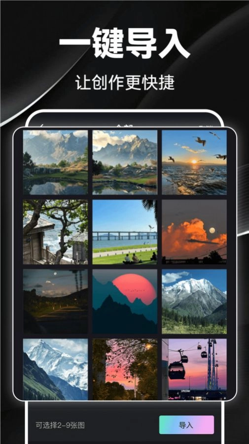 1. 视频导入:支持从手机相册导入视频文件。