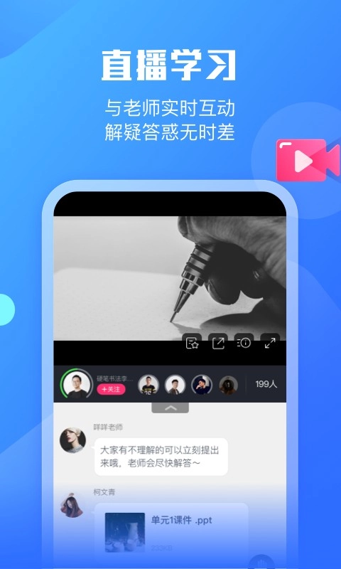 1、通过直播学习的方式来提升效率,随时可以与老师互动。