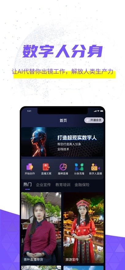 仅需录制几十秒就可以实现分身克隆,智能训练、智能驱动、栩栩如生、数字分身可全年无休,解放真人劳动力。