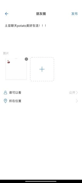 2、在编辑界面,点击发布编辑文字和添加图片,同时也可以选择谁可以看以及当前所在位置。