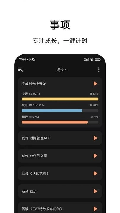 提供了线上的事项记录功能,方便用户可以在线专注计时。